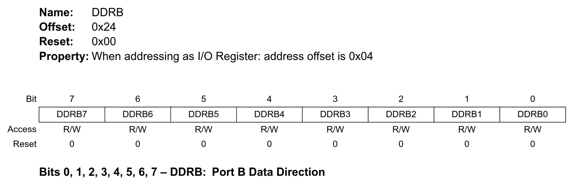 DDRB |= 1 << 5; // set pin PB5 as an output
