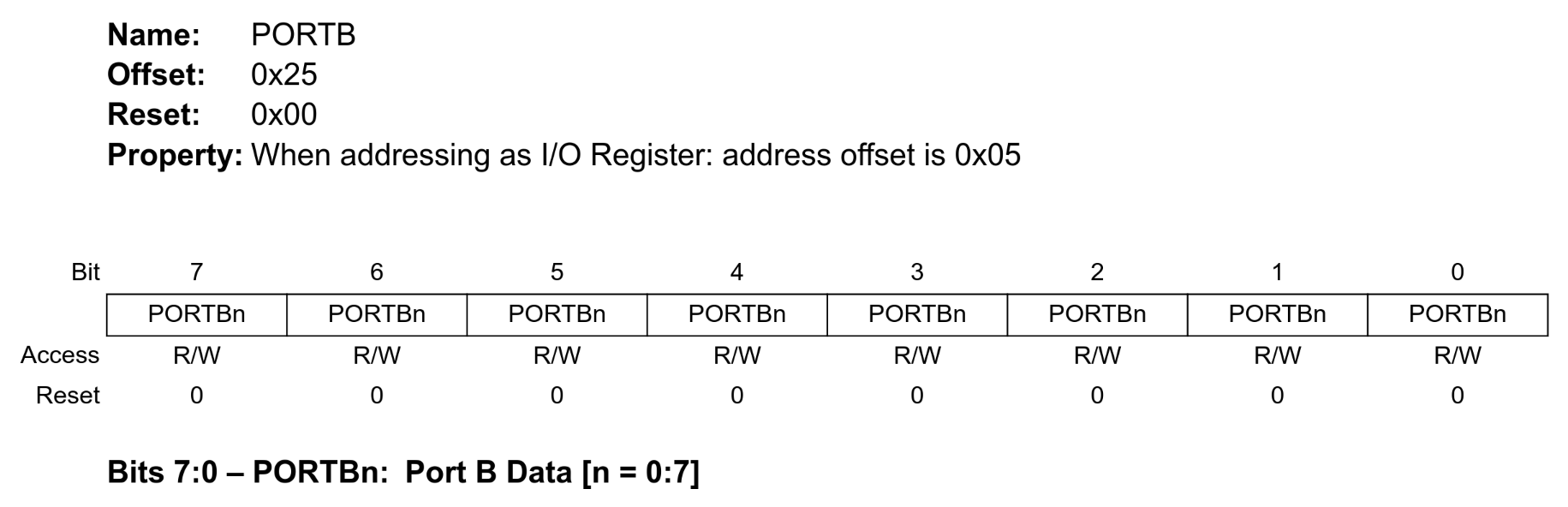 PORTB |= (1<<5); // set pin PB5 high (set bit)