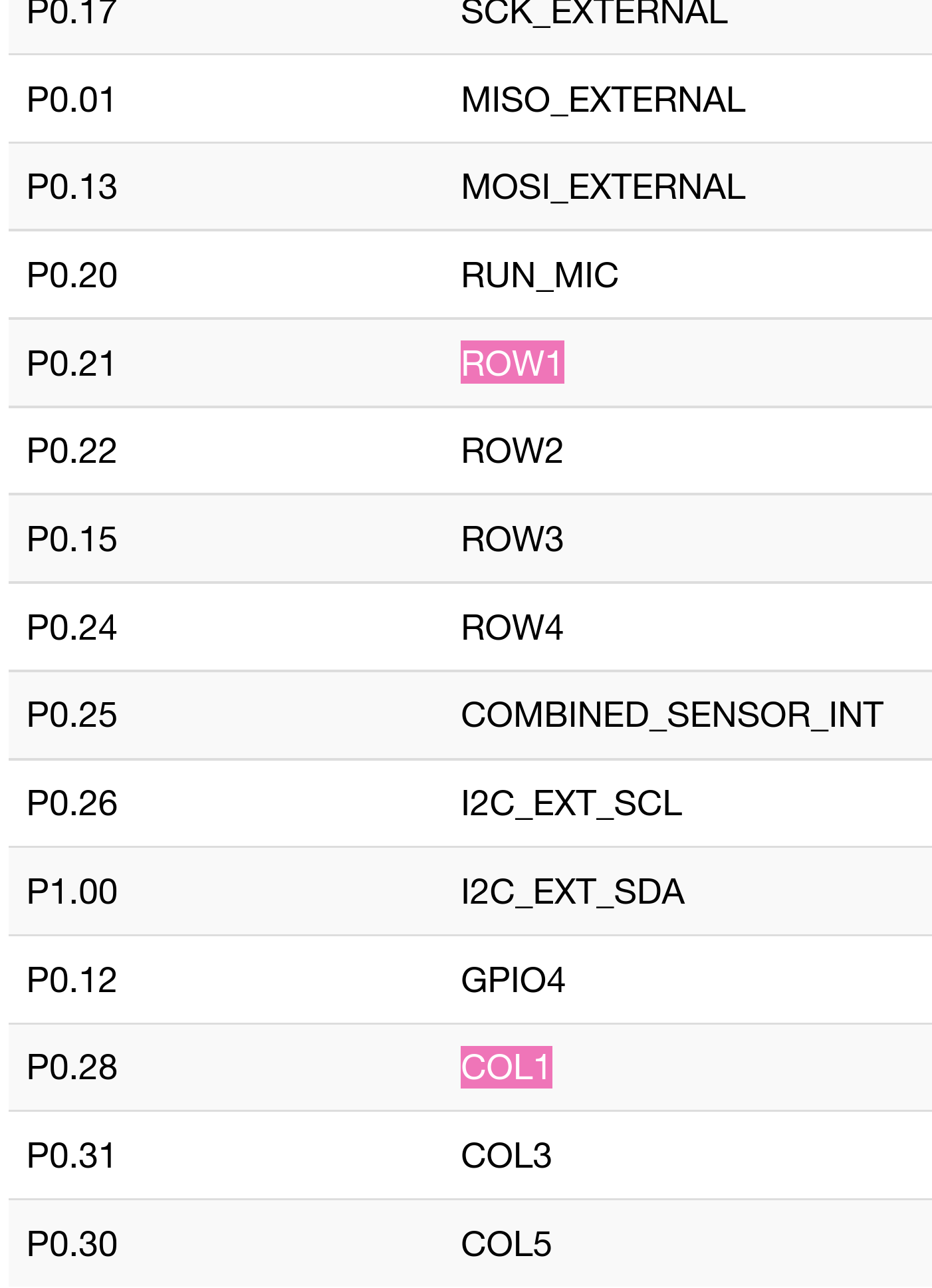 P0->DIRSET = 1 << 28; // set P0.28 (COL1) as output