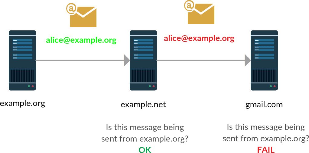 Any parts that are bold in the above example can be faked by a spammer. And they will do it, to take advantage of the good reputation of large email servers (e.g. Gmail, or any large company). In the past, there was no way to prevent this sort of abuse, apart from a special agreement between a sender and a receiver. But special agreements don't scale, so there was a need for something better, to authenticate the sending domain.